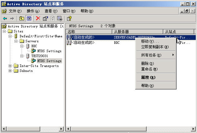 在“管理工具”里,打开“AD站点和服务”,找到如下位置: