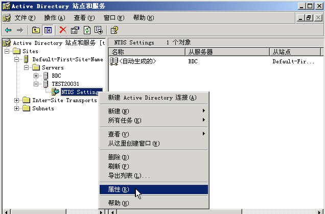 由上图可见,所有的FSMO已经转移到TEST20031服务器上了。最后就是把GC转移过来: