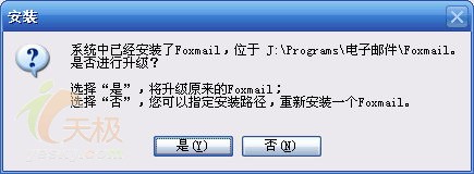 如果你安装过旧版本的Foxmail,会弹出了一个如图2所示的升级提示,点击“是”就可以直接对老版本的Foxmail进行升级了。