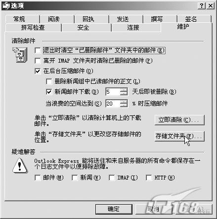 此软件未注册版本无法保存邮件(在备份项目中的Mail folders 显示为DEMO LIMITATIONS),我们可以这样来备份:启动OE,单击“工具→选项→维护”,接着单击“存储文件夹”按钮(如图9)。在打开的“存储位置”对话框中单击“更改”按钮再在打开的“浏览文件夹”对话框中选择第一步创建的D:\mails,单击“确定”按钮返回到“存储位置”对话框,再次单击此对话框中的“确定”按钮。此时,OE会提醒用户重新启动OE以便生效,两次单击“确定”返回OE主界面,然后再关闭OE。启动OE后会弹出移动信件窗口,软件会把原先邮件文件夹下的所有邮件移动到D:\mails文件夹中。这个过程是完全自动的,移动完成后,就可以正常使用了。