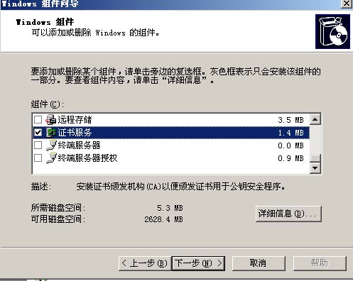 首先,我们需要在整个域中创建一个证书服务器,这里我们选择了Windws 2003中的证书颁发机构工具安装自己的证书颁发机构。
