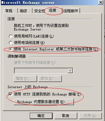 1. 在Microsoft Exchange Server对话框中,切换到“连接”选项卡