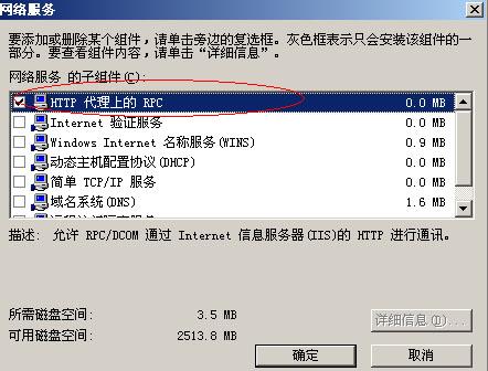 控制面板=>添加删除程序=>添加/删除WINDOWS组件=>网络服务=>HTTP代理上的RPC