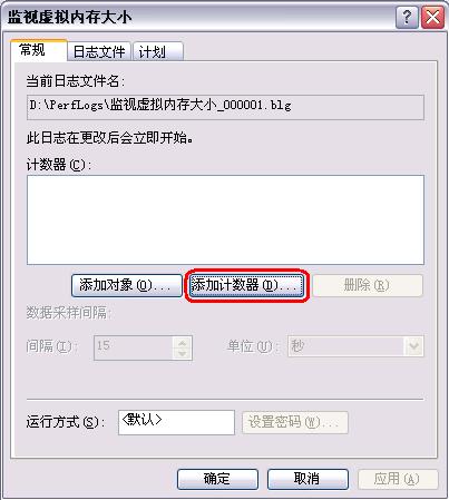 三、随便设置一个日志名称,比如“监视虚拟内存大小”,如图 5。