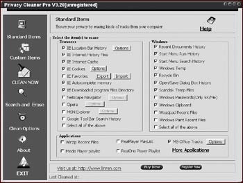 用IE浏览网页会留下大量的无用文件,而且某些文件可能是涉及个人隐私的资料,还是使用Privacy Cleaner Pro清除为妙。