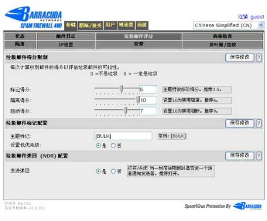由系统管理员自定义标记、隔离、阻断的分数,达到该分数,邮件会被进行相应的处理。