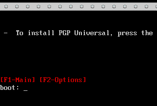 笔者选择的内部服务器模式,马上就开始来安装设置这台服务器。由于Universal在安装过程中会删除掉硬盘上的所有信息,用户在安装之前要注意备份原来的数据或使用专用的机器。使用它的安装CD引导这台专用的(或者说是虚拟的)机器后,马上就显示一个在提示符状态下的正在的加载的屏幕内容,在此,我们可输入安装时的选项参数来定制安装过程。由于在笔者的网络环境下默认的网络IP地址(Universal默认分配的是192.168.1.100的地址)是与网络中的其他设备处于同一个网段且没有冲突,因此我就无需使用“定制网络”(Custom net)这个选项来更改网络的具体参数,只要按下回车键就行了。