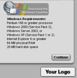 把Satellite从PGP Universal服务器下载到我的外部测试主机上的整个过程非常迅速,并且非常顺利地就得到了下载文件,在下载时,位于下载站点上的一个内嵌的ActiveX脚本会自动检测下载者当前正在运行的操作系统版本,并且自动下载适合于该操作系统的Satellite版本。笔者也测试了一下,当把系统中的ActiveX功能关闭时,在没有ActiveX的情况下,Satellite的下载过程会怎样,结果是一切正常,我们还是可通过页面上的相关链接来手动下载得到合适的版本。