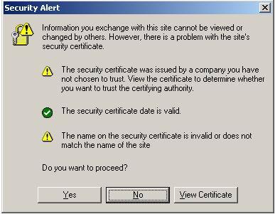 问题: 当在客户端访问https://192.168.0.100/Exchange/(至于为什么不使用https://VirtualAD.ExchangeTest.Com/Exchange访问时,前面已经说得很清楚)时,出现一个Security Alert对话框,如下图:
