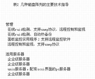 现在市场上的磁盘阵列产品有很多,用户在选择磁盘阵列产品的过程中,也要根据自己的需求来进行选择,现在列举几个磁盘阵列产品,同时也为需要磁盘阵列产品的用户提供一些选择。表2列出了几种磁盘阵列的主要技术指标。