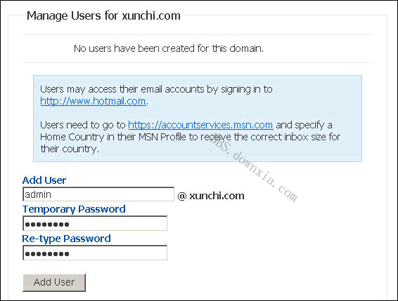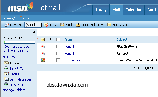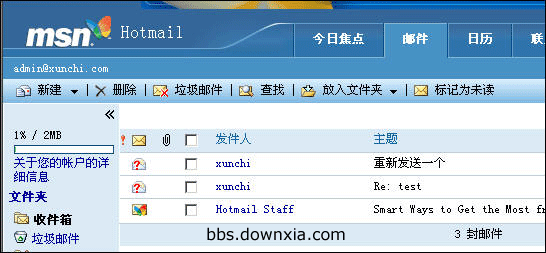 11、现在到 http://www.hotmail.com 去激活邮箱,按照提示更改密码、接受协议、狂按“继续”,终于登录到 admin@xunchi.com 了。