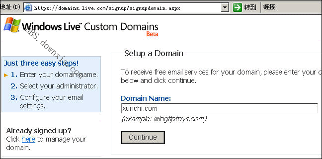 提示:目前不支持中国的 .cn 域名,等 www.live.com.cn 开通吧。