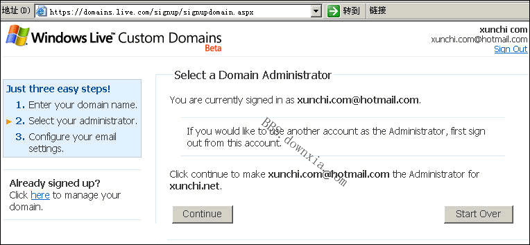1. 打开http://domains.live.com,看到如下图,点右边的 Sign In 登录