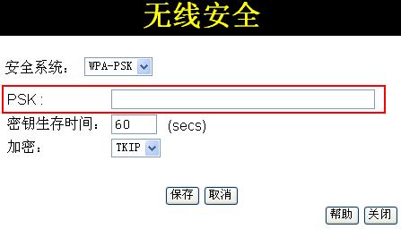 3.点击“无线安全”后的“设置”按钮,进行数据加密设置。接着选择加密方式,在此选择“WPA-PSK”,这是IP806LM这款路由器所提供的最安全的加密方式,接着在输入密码后进行保存就可以了(图7)。然后在要连接到这台宽带路由器上的无线客户端稍做设置。
