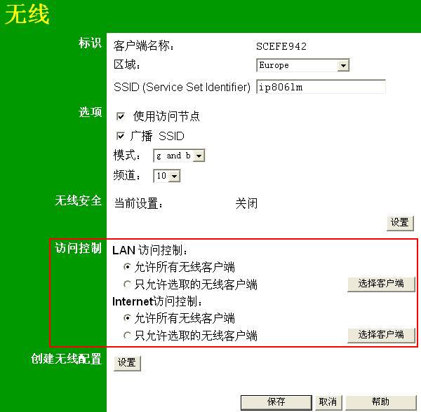 1.在上文所提到的无线配置界面中你可以看到如图2所示的两栏。
