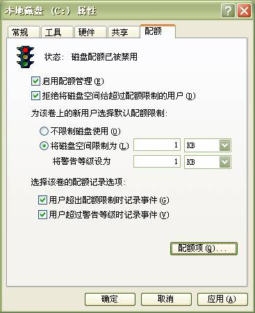 在大多数情况下黑客入侵远程系统必须把木马程序或后门程序上传到远程系统当中。如何才能切断黑客的这条后路呢?NTFS文件系统中的磁盘配额功能就能帮助用户轻松实现对磁盘使用空间的管理。 1.首先右击系统中一个NTFS分区,选择“属性”,可以打开“分区属性设置窗口”,选择其中的“配额”选项。首先勾上“启用配额管理”和“拒绝将磁盘空间给超过配额限制的用户”,这时所有的配额选项将变为可选状态。 2.接着选中“磁盘空间限制”选项,这时我们就可以在其中规定系统中用户使用磁盘空间的大小,如1KB。这样如果用户在分区中传入了一个大于1KB的文件,那么该文件将遭到系统拒绝,无法顺利地传入到该分区当中。 3.同理在“磁盘空间限制”选项下还有一个“警告级别”选项,如果设置了警告级别的文件大小,当用户在使用磁盘空间的过程中超出了警告级别的大小,系统将提示用户该文件超出了磁盘配额中的警告级别。 4.最后用户可以勾选上“用户超出配额限制时记录事件”和“用户超出警告等级时记录事件”两个选项,这样如果系统中有其他用户超出了分区的警告等级和配额限制,系统将把这些事件自动记录到系统日志当中,非常有利于管理员对系统分区空间的监控(图1)。