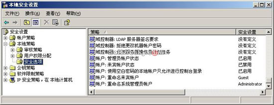 虽然微软声称Windows Server 2003按默认安装后其安全性很强,但笔者发现其实不然,也有很多地方需要经过细心配置才能达到所需要的安全性。“本地安全设置”就是需要好好配置的一块地方。