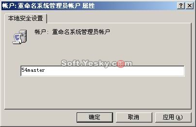 打开“管理工具”----“本地安全设置”,打开其“本地策略”中的“安全选项”,在最后面可以看到有一项帐户策略:重命名系统管理员帐户,图29。双击此策略进入其属性即可修改,图30。这里修改为54master。