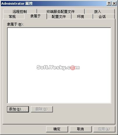 回到“用户”,双击刚建立好的新帐户进入其属性,把默认的全名删除。再在“隶属于”标签里把他从默认所属的Users组里删除后确定,图34。