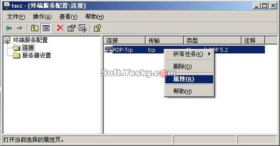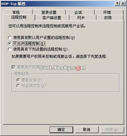 对于个人用户来说,终端服务(不同与上面介绍过的服务)一般来说是不适用的,它的危险性远大于它带来的帮助,它允许从网络中的任何虚拟计算机上管理你的机器。看看微软的说明:可使用运行 Windows Server 2003家族操作系统的任何计算机,通过“管理远程桌面”,来远程管理服务器。使用系统自带的“远程桌面连接”即可完成连接和控制,图23。所以,对于普通用户来说,必须禁止终端服务。从“管理工具”中进入“终端服务配置”,在连接上点右键选择其属性,图24。在连接属性上选择“远程控制”标签,选中“不允许远程控制”后确定,图25。通过这样的修改,即可避免远程用户的非法连接。