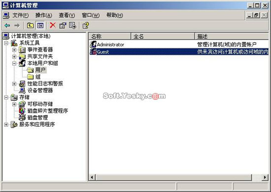 Guest用户作为一个来宾帐户,他的权限是很低的,而且默认密码为空,这就使得入侵者可以利用种种途径,通过Guest登录并最终拿到Admin权限。如何做到这一点不在本文讨论的范围内,这里只介绍如何防御这种基于Guest的入侵。通过对入侵者行为的分析,笔者发现进禁用或彻底删除Guest帐户是最好最根本的办法。但在某些必须得使用到Guest帐户的情况下,就需要通过其他途径来做好防御工作了。首先是要给Guest加一个强的密码,这一步可在“管理工具”----“计算机管理”----“本地用户和组”----“用户”里面设置,图28。然后,按照初级安全配置里面介绍的方法,详细设置Guest帐户对物理路径的访问权限。