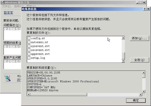 Windows 报告工具搜集计算机的有关信息,专业技术支持人员可利用这些信息诊断和排除计算机故障。Windows 报告工具获得计算机设置和所选系统和程序文件的快照。此快照可以通过多种方法提交给计算机制造商、软件供应商或专业技术支持人员。Windows 报告工具仅用于协助专业技术支持人员排除故障。同时,技术支持提供商可以通过其 Internet 站点管理 Windows 报告工具信息。如果提供商提供电子邮件支持,您可以将报告保存在本地计算机中,然后在电子邮件中将报告作为附件与支持请求一同发送给美国微软公司,以获取帮助(如图2)。
