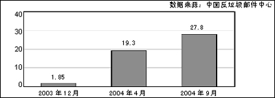 2004年国内垃圾邮件数量呈急剧上涨态势