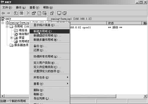 果冻在Windows 2003服务器上安装了DHCP服务后,要想给某个网段内的客户机分配IP地址,首先就得新建一个作用域。