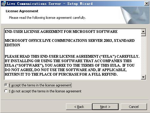 当服务器具备了这些要求后,我们就可以进行安装Live Communication Server 2003了。