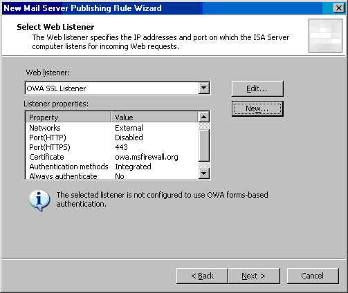基本身份验证确保ISA防火墙预认证用户,阻止没有没有经过认证的主机发送单个数据包到达OWA Web站点。