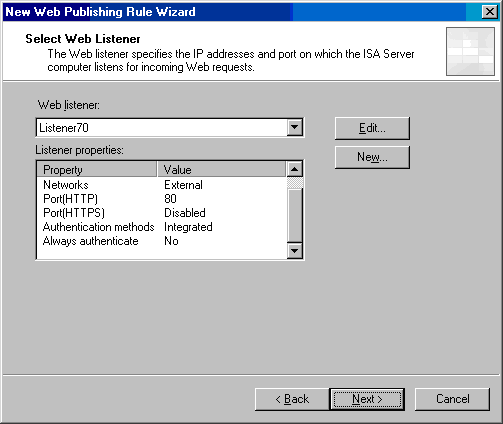 - 在Welcome to the New Web Listener 页,在Web listener name 文本框中输入规则名,在此例中,我们输入Listener70,点击Next;