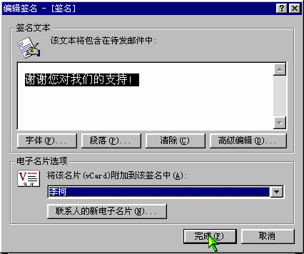 电子邮件文本框前面有一个向下的三角按钮。在这里还可以输入联系人的其他两个电子邮件地址。选择“电子邮件2”,单击邮件地址文本框后面书本按钮,这时“选定名称”对话框就弹出来了。选择一个联系人,单击“确定”按钮,这时“电子邮件2”文本框里就显示了刚才选择的联系人的名字,这样就把新联系人的第二邮件地址指定为一个已有的联系人的邮件地址了。
