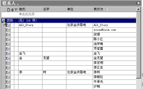 双击相应的邮件项目就可以了。切换到“所有字段”选项卡,在这里可以分类地查看我们输入的联系人信息。打开“项目”下拉列表。选择“所有联系人字段”,这时下面的就显示出联系人的所有字段信息了,我们不仅可以在这里查看信息,还可以在这里修改相关字段的值。在这输入信息与在其他选项卡里输入信息是一样的。