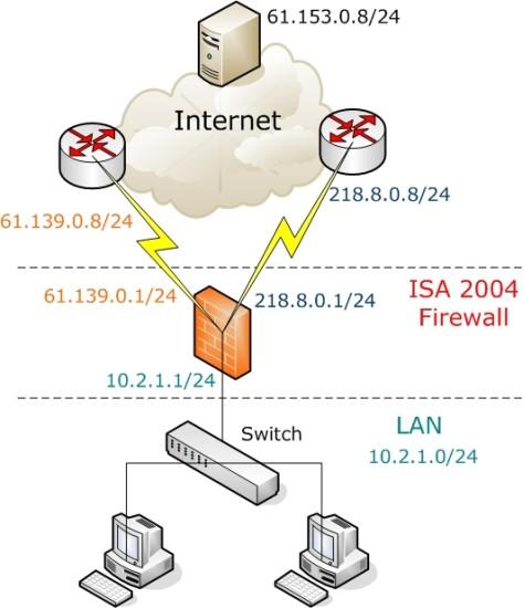 有许多朋友问我如何在ISA防火墙上同时使用多条外部路由。ISA防火墙是基于Windows的路由的,众所周知,Windows系列的计算机都不支持同时使用多个默认网关,但是请你注意,仅仅是不支持同时使用多个默认网关,不是不支持多个默认网关,也不是不支持同时使用多条路由。你可以配置多个默认网关(配置多个默认网关时必须注意所配置的默认网关都必须属于互联的网络中,否则会出现路由问题),但是Windows只会同时使用一个,如果当前的默认网关出现故障,则使用下一个默认网关(注:Windows会通过一种“死网关”检测算法来自动进行检测,不过我没有找到更为详细的信息:()。Windows是可以根据路由表中的定义,对于不同的目的地使用不同的路由的。
