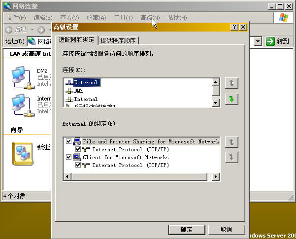 从上图可以看出,默认路由是通过61.139.0.8这个网关。为什么不是218.8.0.8呢?这个是通过系统网络适配器优先级来定义的,你可以通过网络连接的高级菜单的高级设置中进行调整,如下图所示: