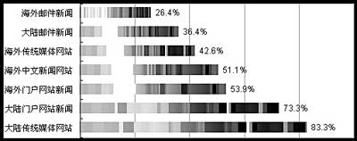 统计表明,网民最信任的网络新闻仍然是内地传统媒体所办的网站;其次是内地门户网站新闻。同内地的网络媒体相比,人们对于海外的门户网站、新闻网站的信任度均低于国内网络新闻。同以上网站新闻相比,网民对于邮件新闻的信任程度最低,这也跟近年来垃圾邮件信息泛滥有关。