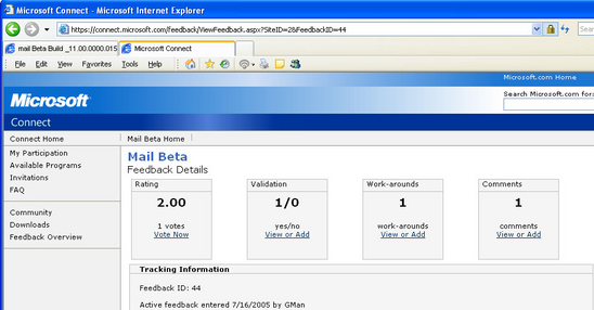 从截图可以看出,地址栏下方多了像Firefox的标签栏,而且也发现了之前所报道的IE正式支持RSS的按钮(工具栏中打印机图标左边)。在地址栏右边也发现了一个黄色的锁,看来微软对安全性方面真的下了很大苦心。地址栏右边一点点的位置中也发现了MSN Search的痕迹。