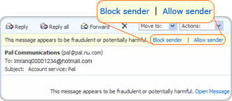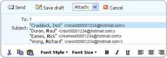 下面的截图看出新Hotmail功能更为人性化,可提示邮件地址,而且对阻止垃圾邮件更方便了