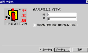test1@swfzasp.com,按“下一步”,又出现下面的对话框,要求输入用户的姓名,