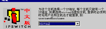 我们输入本机IP10.161.248.3,按“Next”后再用“Next”跳过要你输入别名的对话框,当然如果你在一台上设置多个邮局的话,就要选择虚拟邮局了,如下图,
