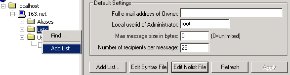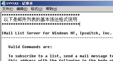1、“Edit Syntax File”:单击此处可修改列表的语法说明文件;当客户端发出的邮件的列表命令格式不正确时也会得此内容的回复信。如下图所示: