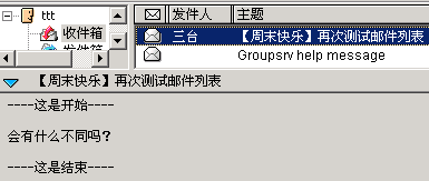 ⑺以上⑴、⑵、⑶项设置后收到的邮件将如下图所示。其中“【周末快乐】”、“----这是开始----”、“----这是结束----”分别是标题栏最前方、正文最前方、正文最末尾中设定的内容。