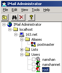 6、改完之后在“IMail Administrator”(IMail管理器)中再按刷新即可看到新的用户列表。如下图: