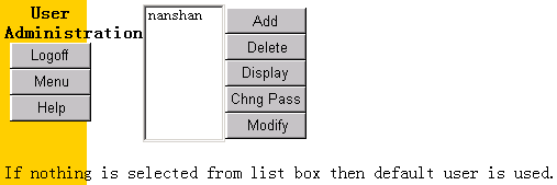 5、选“Add”(增加)即可增加新的用户;还可进行“Delete”(删除)、“Display”()、“Chng Pass”(改变用户密码)及“Modify”()等操作。增加新用户的界面如下图所示: