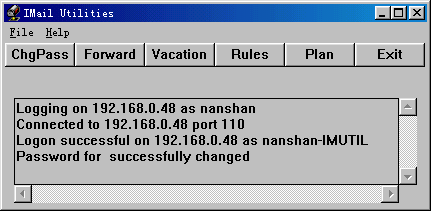 此两种小软件均可正常运行于各种版本的 Windows 下!利用它们,你可以轻松自如地在你自己的机器上远程管理IMail邮件主机的各种服务、用户库、用户密码和别名等资料,基本功能完备而操作却很简单,实是上到邮件主机管理员,下至普通邮件用户都很适用的远程管理利器!