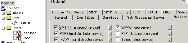 答:首先需给所有用户均赋予“Allow Web access”的权限;然后再选中“localhost”,进入右边面板的“POP3”项,将此服务“Stop”(停止)即可。如下图所示: