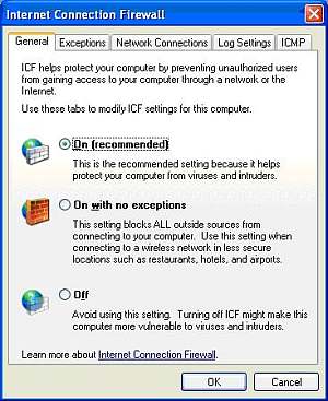 Windows XP最新的SP2补丁对ICF做了很大的改进,功能更强大了,ICF有了自己的设置项,安装SP2后,默认情况下,启用ICF防火墙,不允许任何外部主动连接,即使是本地的应用程序要访问网络也需要在许可列表中做设置。