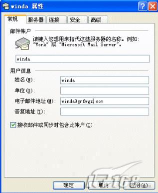在图7所示对话框中配置相应邮箱的帐号和完整的电子邮件地址。在图8所示对话框中要配置在NSP上的邮件服务器POP和SMTP服务器地址(或IP地址,通常为同一地址)和帐号、密码信息。同时也要选择“我的服务器要求身份验证”复选项。