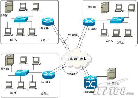 在客户端,各公司服务器上还要建立与VPN服务器的客户端连接,具体方法比较简单,在此也不作介绍了。