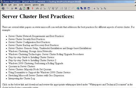 Clusdiag中包含了一个指向Microsoft Windows Server 2003 群集网站的连接,在这个网站中,你可以查找到更多的群集信息。